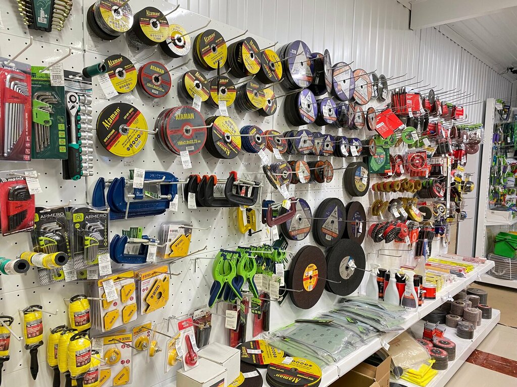 Первый этаж здания занимает магазин Строительных материалов. Большой ассортимент товаров для дома, сада и огорода.